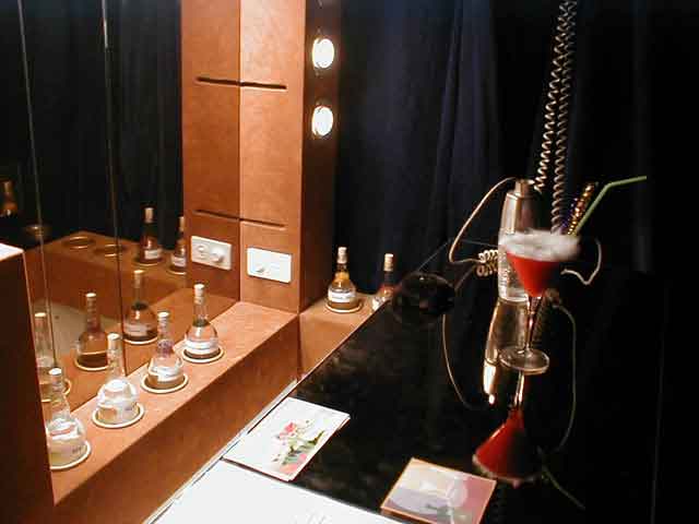 Der Besucher zieht eine Jacke über, in welche Lautsprecher eingebaut sind. Im Cocktail-Shaker, im Glas und in der Bar sind ebenfalls Lautsprecher eingebaut. Der Barkeeper mixt dem Besucher einen akustischen Drink. Jede der 10 Flaschen entspricht einer Klangfamilie. Percussive Klänge, Basstöne, Stimmsamples, usw. Die Zeitdauer, welche eine Flasche ausserhalb ihrer Halterung ist entspricht dem prozentualen Anteil dieser Klangfamilie im Cocktailshaker, im akustischen Drink.