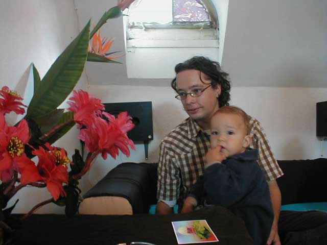 SoundSofa war eine kleine gemütliche Sitzgruppe mit einem Tisch und künstlichen Blumen. Für diese Installation verwendeten wir acht Theremins. Die Antennen der Theremins ersetzten wir durch Drähte die wir um die Stämme der künstlichen Blumen windeten und in die verschiedenen Teile des Sofas einnähten. Jeweils die Sitzfläche, die Rückenlehne und die äusseren Armstützen waren verkabelt. Das Sofa und die künstlichen Blumen konnten somit die Berührungen von Menschen registrieren und mit dem Abspielen und Modulieren von Musik darauf reagieren. |