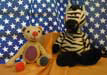 Auch wieder dabei. Unsere süssen kleinen Mitarbeiter. Das Küss-mich-Zebra und der Klimper-Bär. Beide wollen geknuddelt und gedrückt werden.