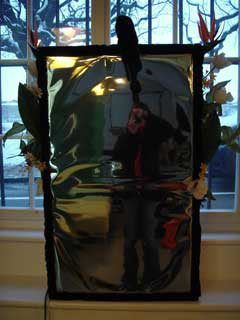Sieh, was du sagst. Unser Spiegel machts möglich. Über ein Mikrophon hört der Spiegel deine Stimme oder das Klatschen deiner Hände und bewegt sich dazu. Technisch erklärt: Das über das Mikrophon eingehende Audiosignal wird im Computer dermassen bearbeitet, dass es keine Nulldurchgänge mehr aufweist. Danach dient es zur Amplitundenmodulation eines Null-Hertz-Sinustones. Einfachergesgt: Die Spule des Lautsprechers bewegt sich analog zur Amplitude des Inputsignales. Die Membrane bewegt dann die Spiegelfolie. |